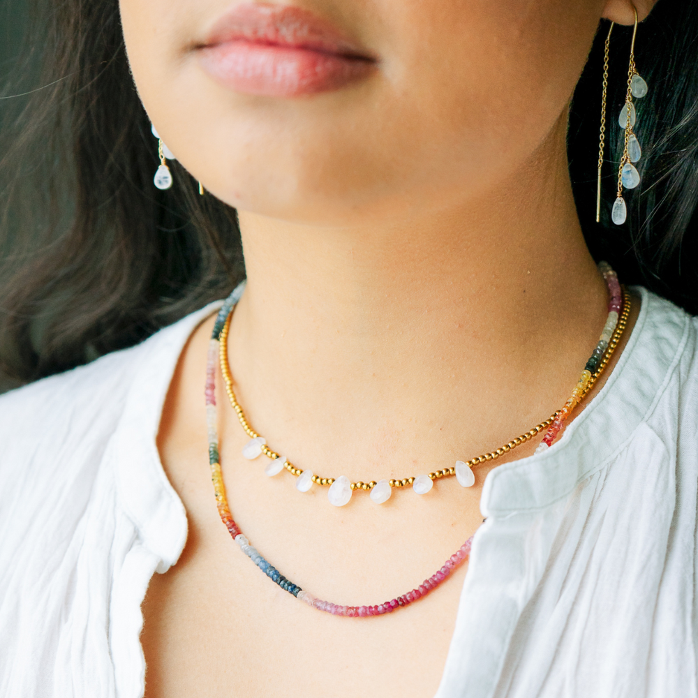 Rainbow Moonstone Threader Earrings | Waterproof Gold | Gemstone Jewelry